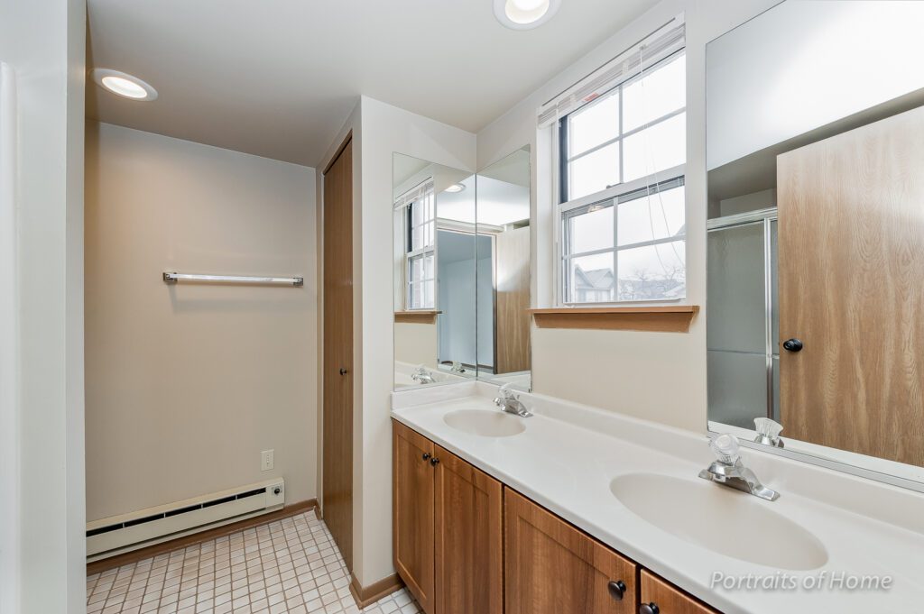 - Bathrooms with oversized showers, ceramic tile, and his/her cultured marble vanities